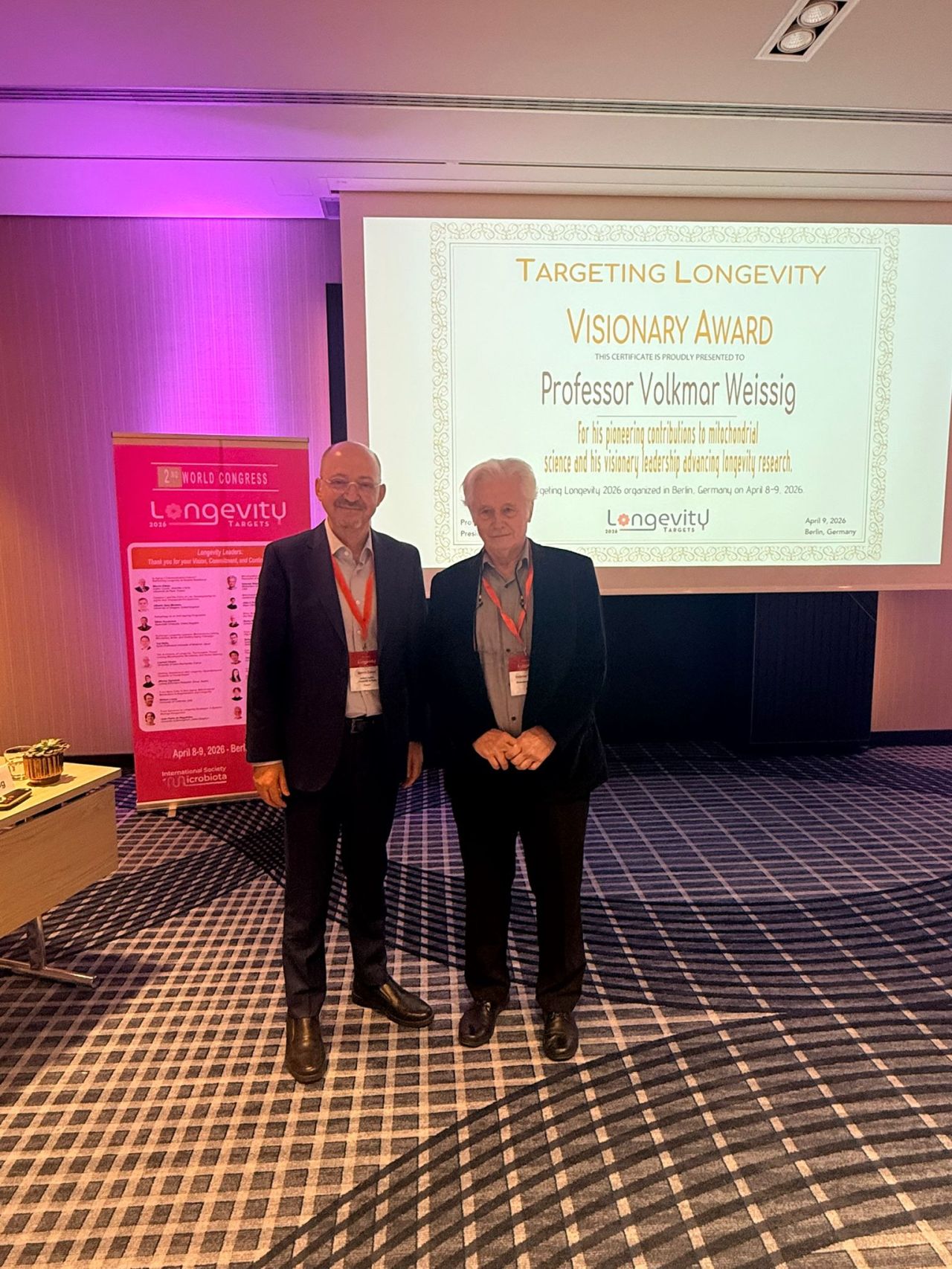 “Professor Weissig has contributed to transforming how we understand aging. His work positioned mitochondria at the center of biological communication and resilience, opening new strategic directions for longevity science,” stated Marvin Edeas, MD, PhD.
